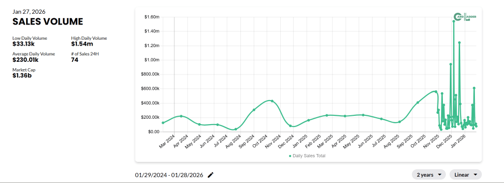 - The Spike: We are seeing massive vertical liquidity spikes, with a High Daily Volume hitting $1.54 Million.