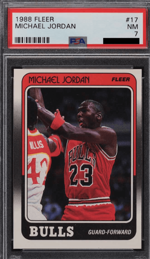 - The Logic: This is a 3rd-year card. In a world where the ’86 Rookie is six figures, the ’88 is the next logical step for priced-out investors. A PSA 7 is liquid cash. We aren’t looking at a multiplier here; we are looking at Access. For a new collector entering the hobby in 2026, this is the only pre-1989 Jordan they can afford. That creates a permanent “floor” on the price. It is a defensive asset that will never go to zero.