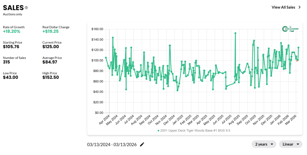 Our target was the 2001 Upper Deck Tiger Woods #1 in BGS 9.5 (Gem Mint) condition.